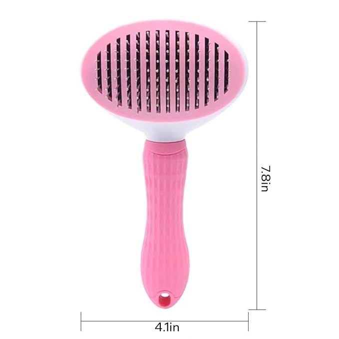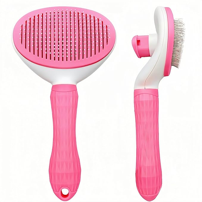 Self-Cleaning Slicker Brush for Dogs and Cats, Hair Cleaner Brush, Shedding and Dematting Grooming Comb, Pet Grooming Brush-Pink