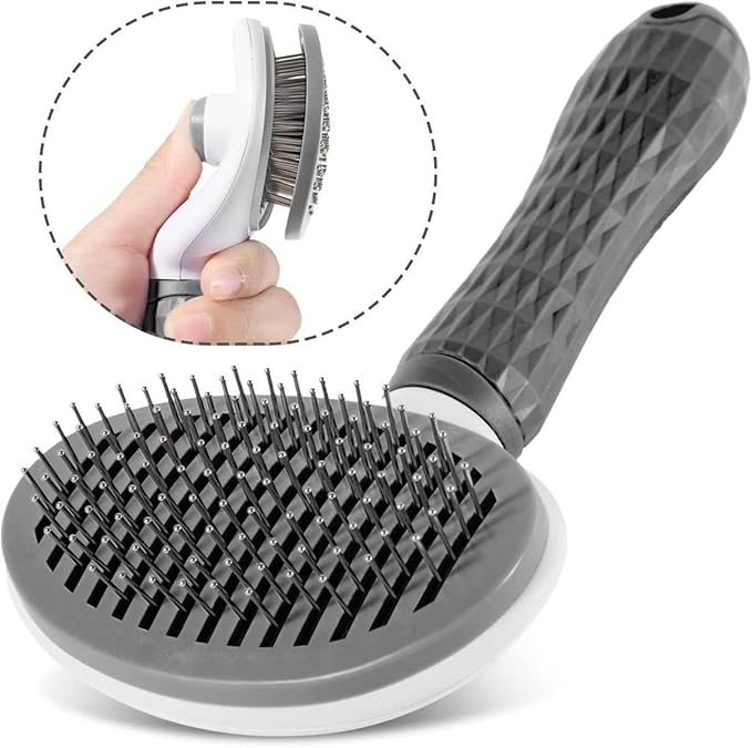 The pet grooming brush works wonders on my golden retriever’s thick coat. It removes loose fur effortlessly and my dog actually enjoys being brushed now.