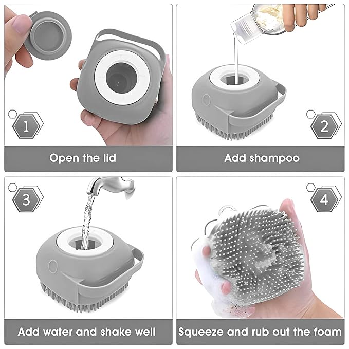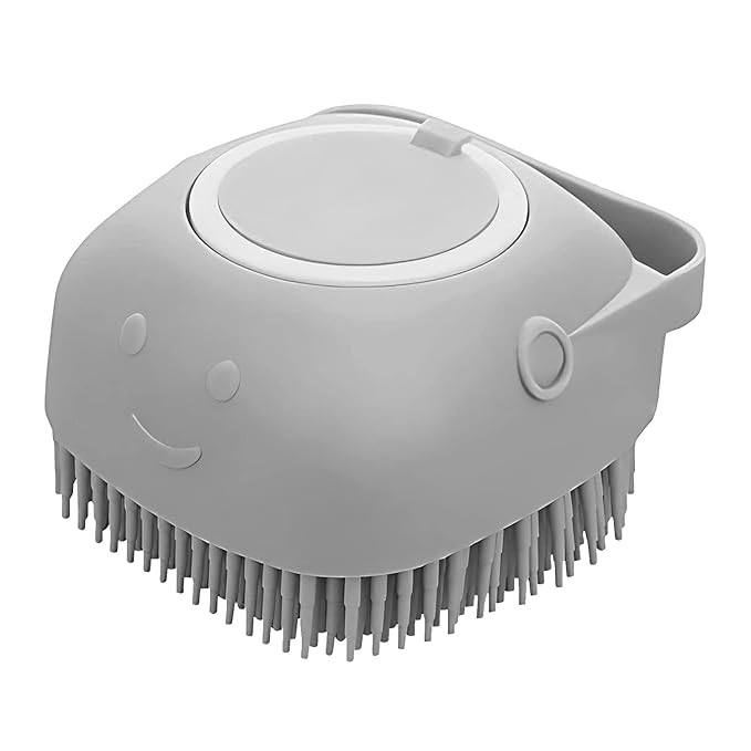 NICESHOP Dog Cat Bath Brush Comb Silicone Rubber Dog Grooming Brush Silicone Puppy Massage Brush Hair Fur Grooming Cleaning Brush Soft Shampoo Dispenser (GRAY)