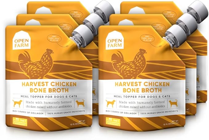 Open Farm Bone Broth, Food Topper for Both Dogs and Cats with Responsibly Sourced Meat and Superfoods Without Artificial Flavors or Preservatives, 72oz (6 Pack Harvest Chicken)