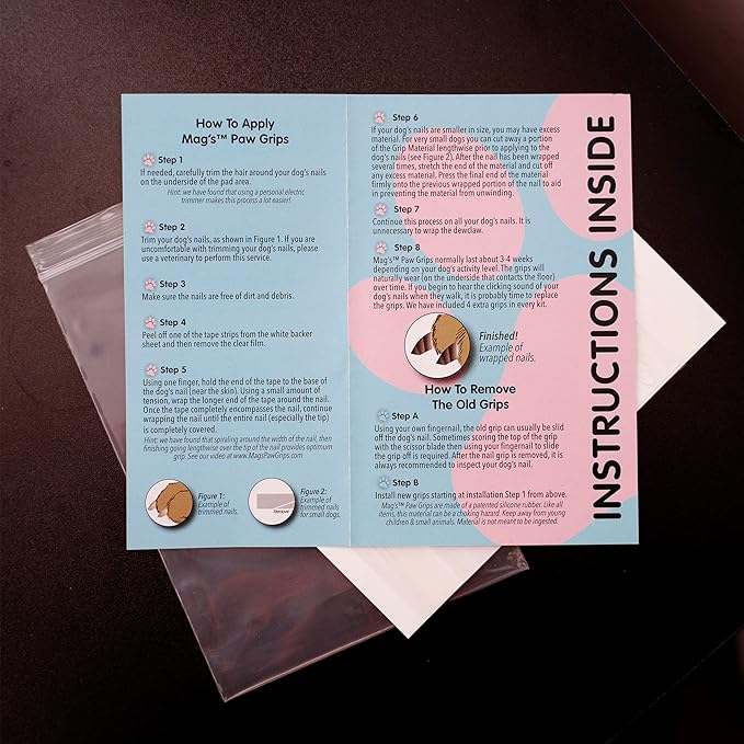 Mag's Paw Grips - Toe Grips for Senior Dogs - Anti-Slip Traction on Hardwood Floors - Nail Wraps for Dogs Under 100lbs