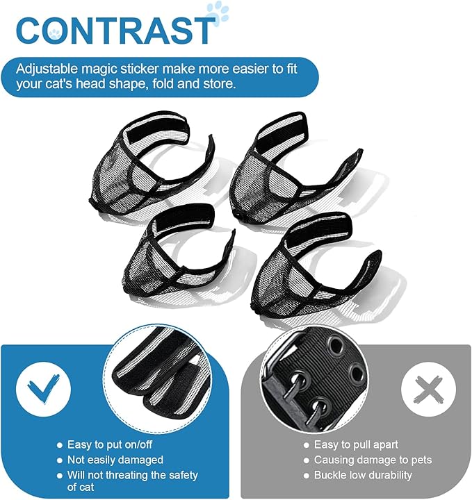 - Multifunction: This cat muzzle is great for nail trimming. Helping you quiet your cat then you can clipping nails/bathing/grooming for them, anti biting and licking.