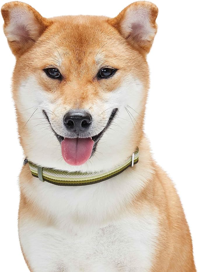 Blueberry Pet 3M Reflective Dog Collars | Adjustable Dog Collar w/Multi-Colored Stripe - Olive | Nylon Pet Collars for Dogs & Refflective Dog Collar for Small Dogs