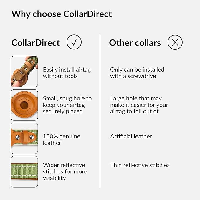 - Designed for the Apple AirTag - This dog tracking collar was designed to fit the Apple AirTag. Our airtag dog collar has a double snap and small opening to ensure your airtag's placement. Plus, the air tag collar has reflective stitching for nighttime walks.