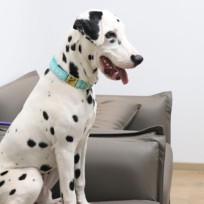 Lionet Paws Boy Dog Collar, Comfortable Adjustable Cute Yellow Starfish Collar with Metal Buckle for Male Puppies and Cats Gift, XS, Neck 8-12 inches