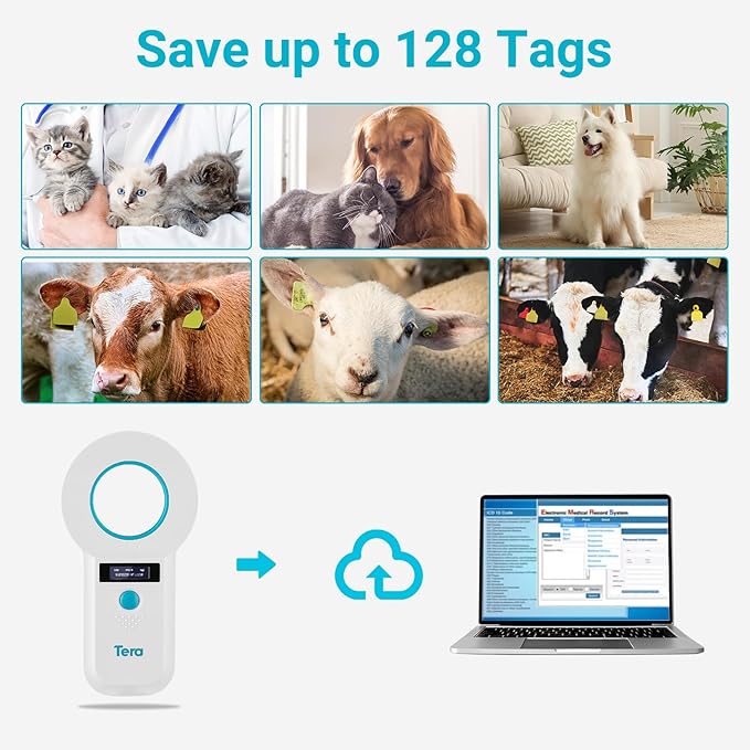- 【3-in-1 Connections】Tera Pet Scanner has extremely fast scanning speed and can save up to 128 tags information, you can upload these information to your computer via USB cable, wireless 2.4G or BT, offering you the flexibility to switch between the three options as per your preference. The dual-frequency mode supports 134.2KHz and 125KHz, increasing the flexibility and compatibility in reading and identifying RFID tags.