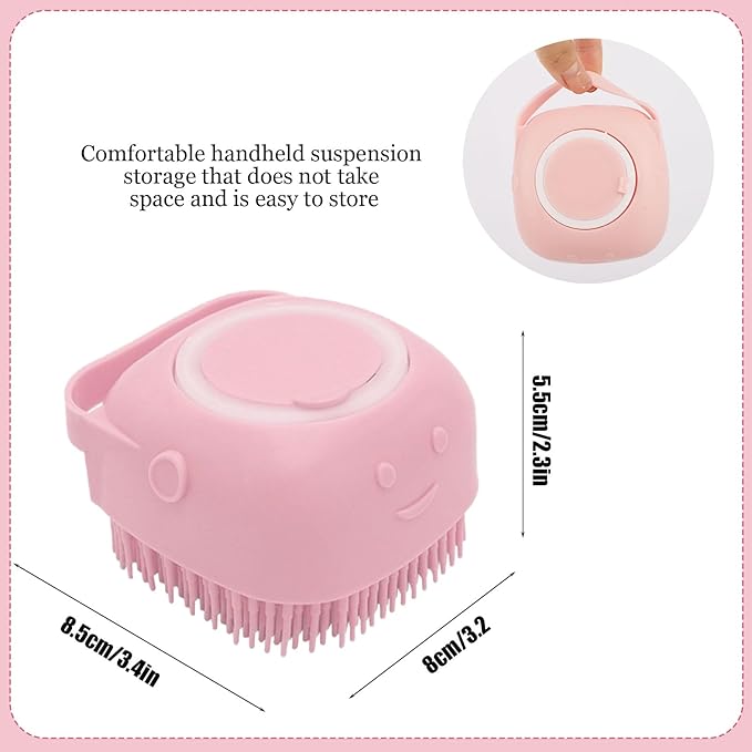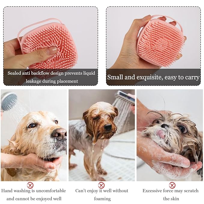 Dog Cat Bath Brush Comb Silicone - Pet Brush for Cats Dogs With Soap Dispenser Grooming Cleaning, Pink