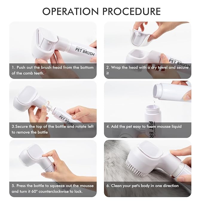 - 【Unique Design】 Our pet comb can be used with waterless shampoo (not include) and wipes. Better prevent static electricity and flying hair, while allowing for care cleaning of the hair, save your cleaning time. Due to the different skin pH of cats and dogs, the ingredients of waterless shampoos are also different, so we do not provide no-rinse shampoo within brush, please choose the correct shampoo for your pet. It is recommended to use with our stryfull waterless shampoo for better results.
