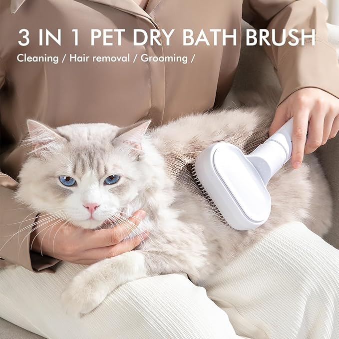 - 【3-in-1 Pet Hair Brush】Our pet hair cleaner brush for cats & dogs has the multi-functions of loose hair removal, grooming, cleaning, one brush in place, providing care and cleaning for their fur, allowing your pet to enjoy a salon-level grooming experience.