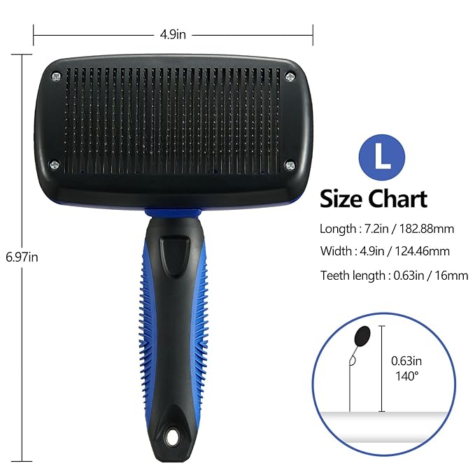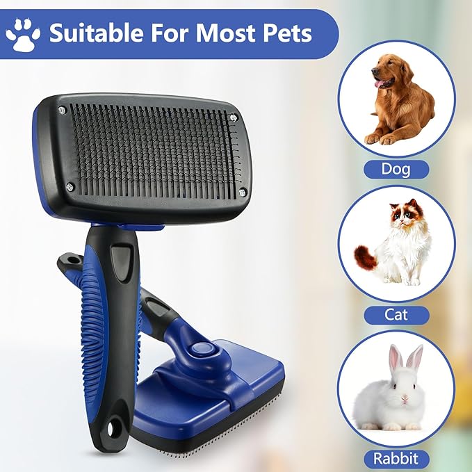 Self-Cleaning Slicker Brush for Pets - Removes Loose Hair, Cat and Dog Grooming Tool (Large, Blue)