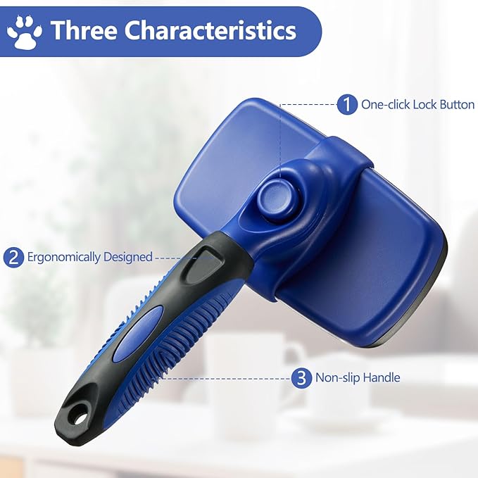 - 🐇One-touch Lock Button: Our brush features a convenient one-touch lock button, allowing you to easily retract the bristles for hassle-free storage and preventing any accidental damage to the brush or injury to your pet.
