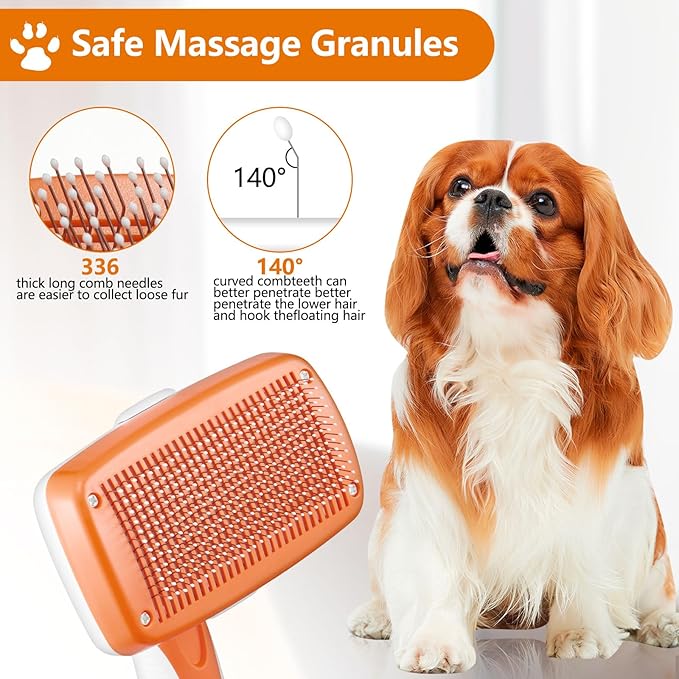 - 🐾Safety Massage Granules: Our pet slicker brush is designed with safety massage granules that gently stimulate your pet's skin, promoting blood circulation and providing a soothing massage experience during grooming sessions.