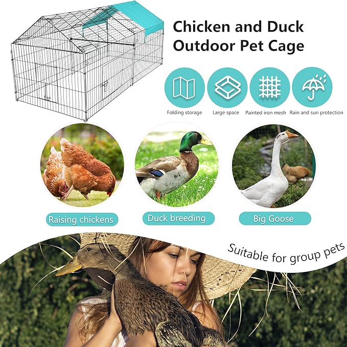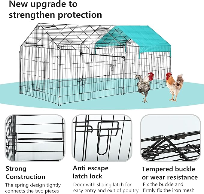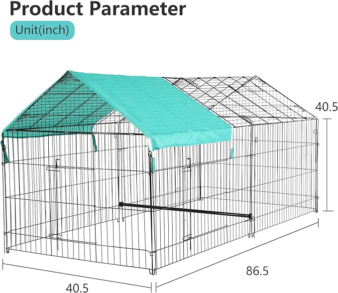 - ✔【Anti-Rust Metal Exercise Pet Pen】Epoxy coating finish extends the life of the chicken run and provides resistance against rust, corrosion, and fading, even in the most extreme climates. Pet fence with door pet exercise pens pet fence.Chicken Coop Chicken Run Chicken Pen Rabbit Hutch