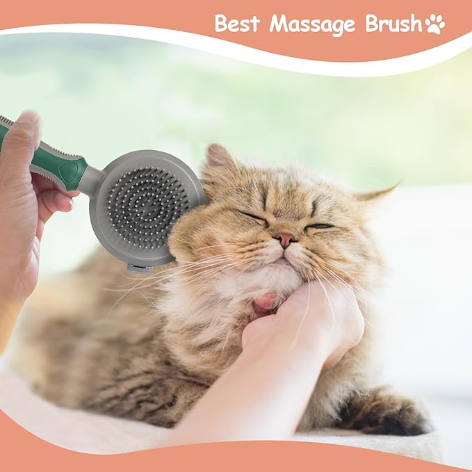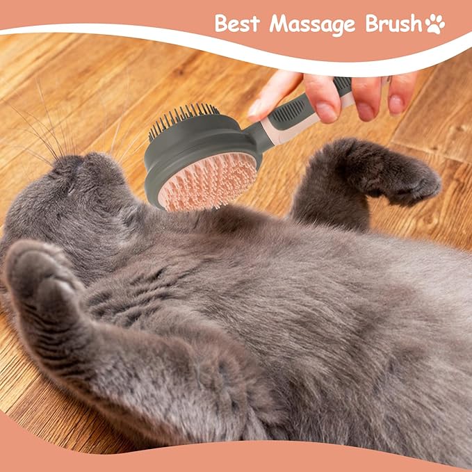 - Double-Sided Comb Design: Cat brush with release button adopts a unique double-sided long-short needle comb design. On one side, the octopus soft rubber brush head can massage the pet to promote its blood circulation, and on the other side, the long-short needle brush surface has dense and round comb needles, which can clean the pet's hair more deeply and make the pet's hair supple, which is very practical for your pet.