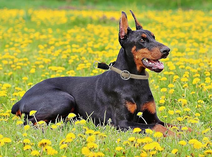 Braided Rope Collar, Pro Training Dog Collar, No Pull Round Martingale Collar, Slip Collar with Slidable Stop Ring - Ideal for Large Dogs (L(1/2") - 22" Long, Khaki)