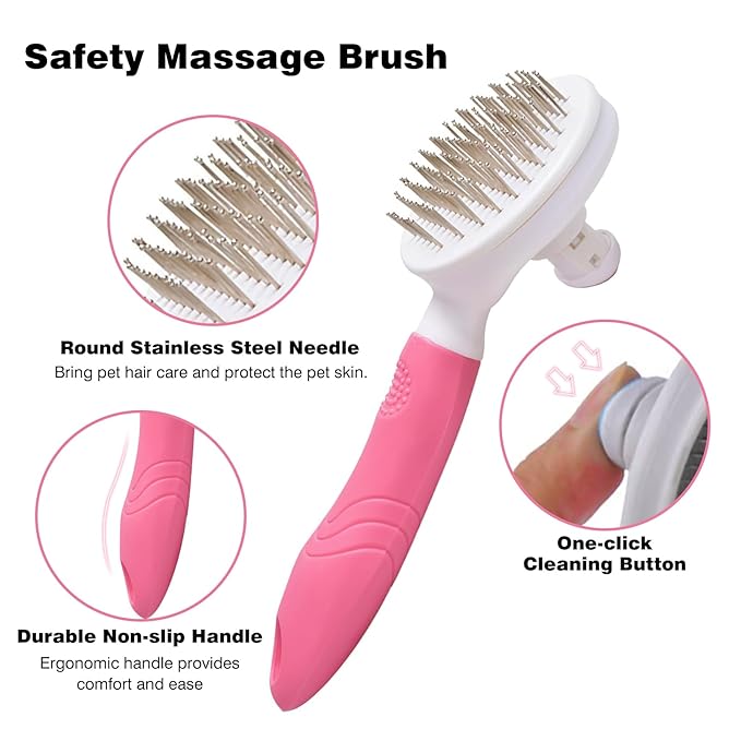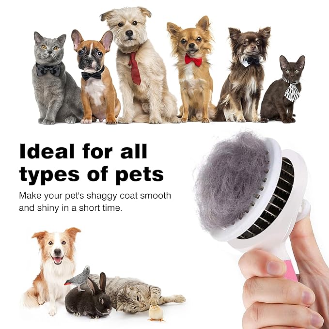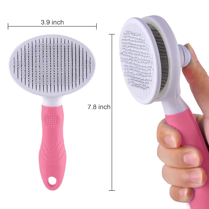 - Self-Cleaning Brush: This cat brush built with an automatic hair removal button on the handle. Simply press the button, remove the fur from bristles instantly, saves time and energy when grooming and cleaning.