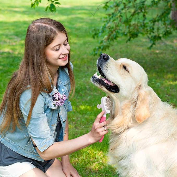 The pet grooming brush works wonders on my golden retriever’s thick coat. It removes loose fur effortlessly and my dog actually enjoys being brushed now.