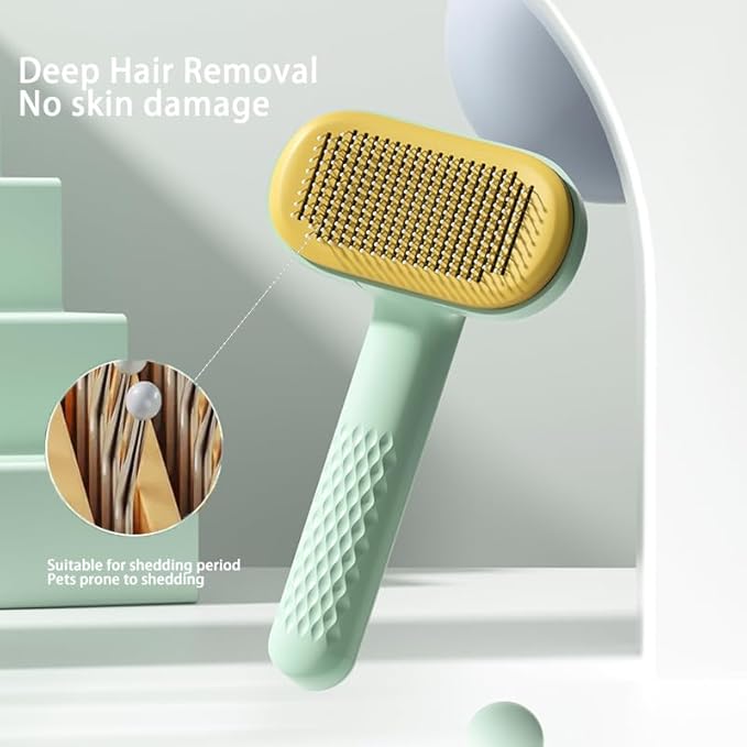 Self Cleaning Slicker Brush,Pet Grooming Brushes For Long Short Haired Dogs Cats, Removes Loose Undercoat & Tangled Hair And Shedding Hair Fur, For All Kind Of Animals (green)