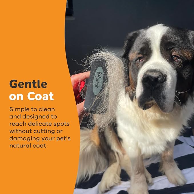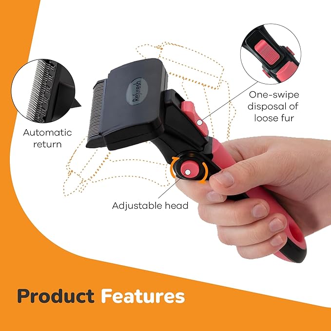 The pet grooming brush works wonders on my golden retriever’s thick coat. It removes loose fur effortlessly and my dog actually enjoys being brushed now.
