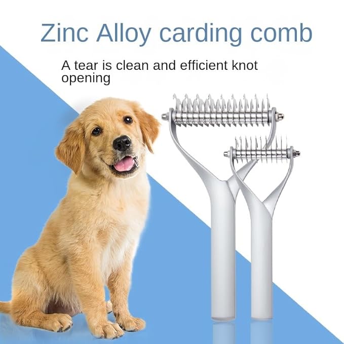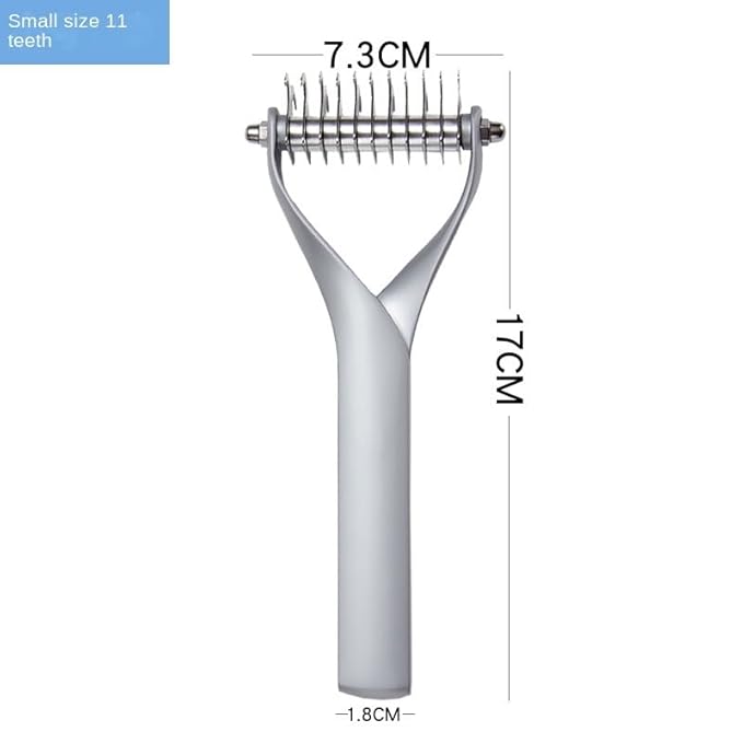 - DOUBLE SIDED DEMATTING COMB - Dematting comb with the 9+17precision teeth,That has a different number of teeth on each side.The lower density side is a dematting rake for stubborn matts and tangles. The higher density side is a detangler, deshedding tool, or undercoat rake for faster results thinning and to control shedding;No hurting or scratching