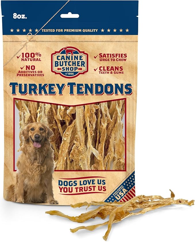 Turkey Tendons for Dogs Made in USA, Raised in USA, All-Natural Dog Chews for Small Dogs, Dog Snack for Large Dogs, Single-Ingredient Treat, Healthy No Hide Dog Chews (8 oz)