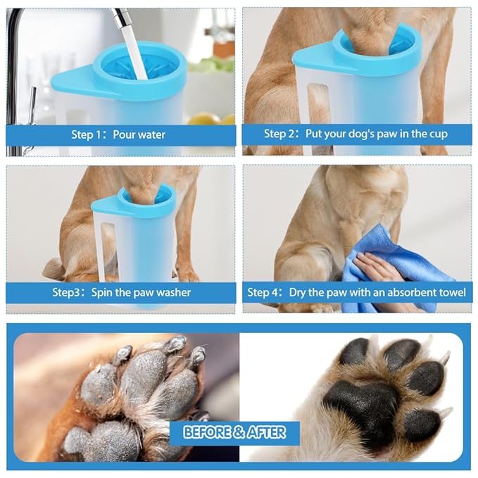 - Easy To Use - Add a little water, put in muddy paws, twist the cup and dry the paws. Repeat and soon your furry baby won't be bringing dirt from his feet indoors.