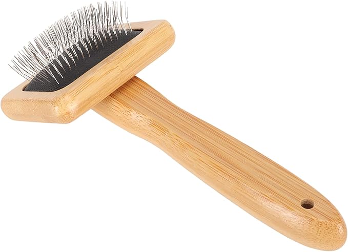 - Material】Composed of flexible stainless steel needles and liners, the wool carding brush is softly resilient when brushing and are not easily worn or broken. The handle of the grooming comb is made of bamboo material, finely polished with smoothly curves.