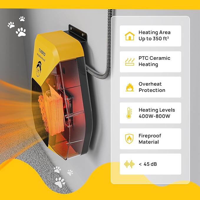 TURBRO Neighborhood DH800A Dog House Heater 800W, Wall Mount, 10ft Anti Bite Cord, Waterproof Control, Overheat Protection, Electric Warmer for Hound Kennel Cat Cage Chicken Coop, UL Test Passed