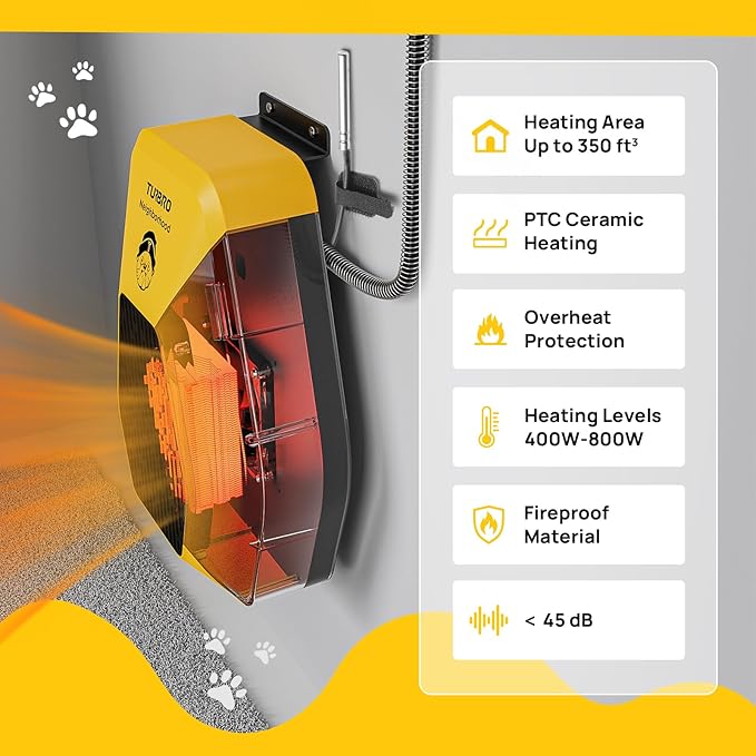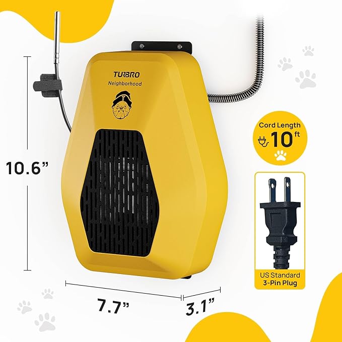 TURBRO Neighborhood WiFi Dog House Heater 800W, Wall Mount, 10ft Anti Bite Cord, Waterproof Control, Overheat Protection, Electric Warmer for Hound Kennel Cat Cage Chicken Coop, UL Test Passed