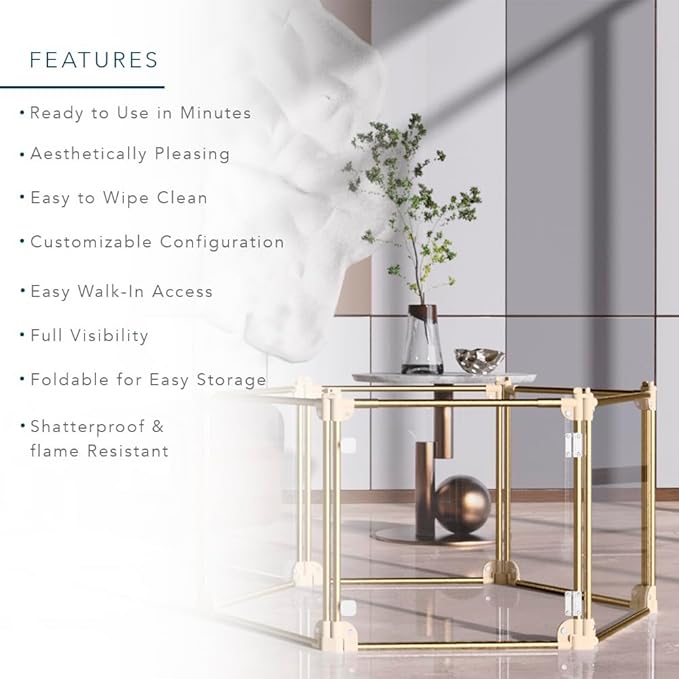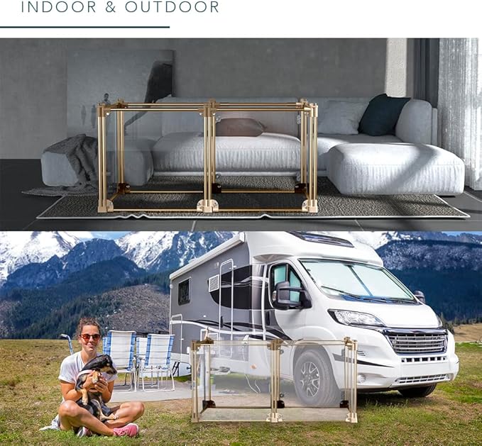 - MODERN & DURABLE DESIGN – Crafted with clear panels and sturdy rods, this dog fence blends seamlessly into any home. The durable materials ensure long-lasting use, making it a stylish yet functional indoor dog pen.