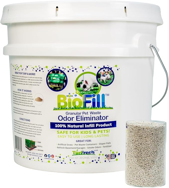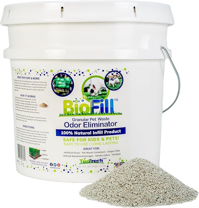 - Made of natural minerals, BioFill absorbs liquids and neutralizes compounds, acting like both a sponge and a magnet for your pet’s urine; Apply evenly and brush into your turf for best results