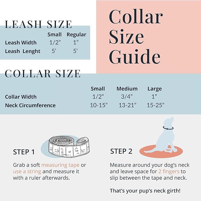- đ¤LOOKING FOR A MATCHING COLLAR+LEASH SET TO USE ON WALKS? Weâve got you covered. And youâre going to love the bright, colorful options! Our beautiful collars have matching leashes that are perfect for dog walking and hiking. Leashes are 5 feet long, with a comfortable, soft hand loop that keeps you in control of your pooch. Leashes come in two widths and can be purchased separately. Browse our Amazon store for more options