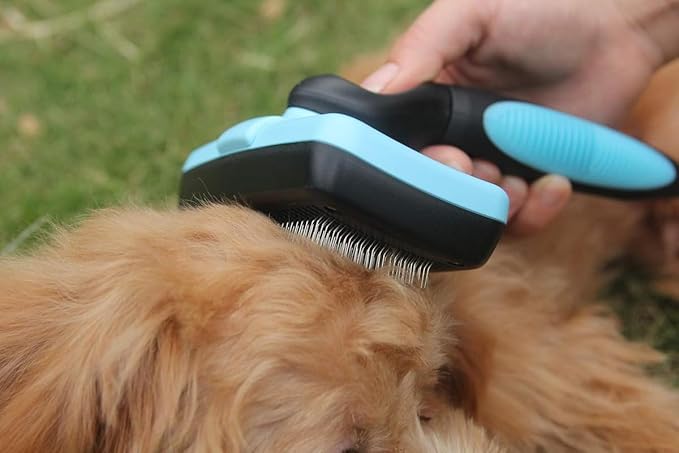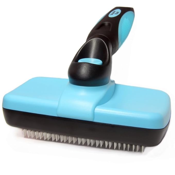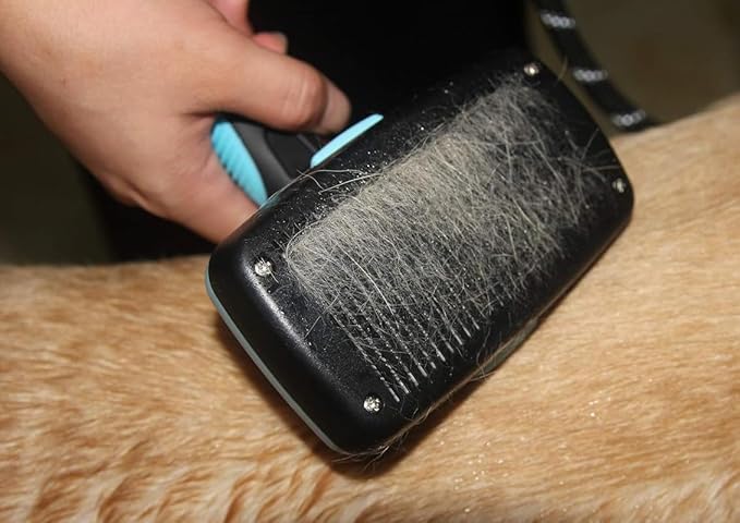 The pet grooming brush works wonders on my golden retriever’s thick coat. It removes loose fur effortlessly and my dog actually enjoys being brushed now.