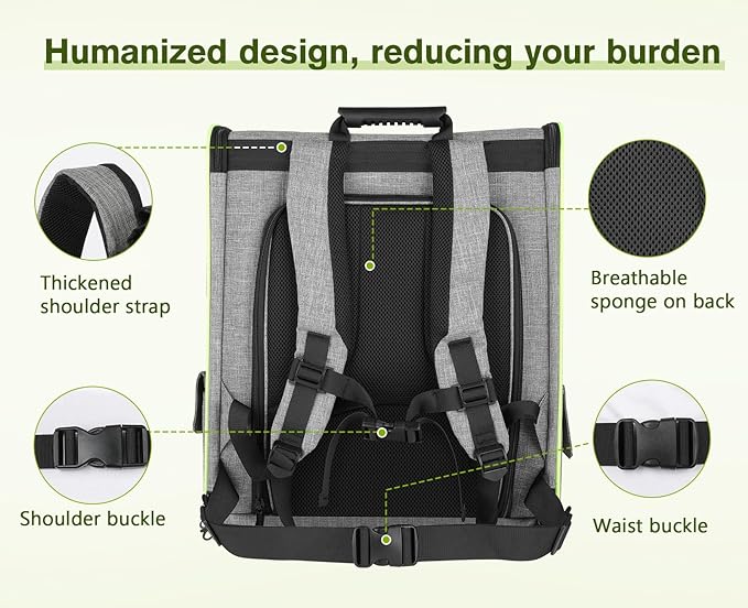 - 【 ERGONOMIC DESIGN 】: The widened & padded shoulder straps and back provide support and help reduce load and increase comfort. 2 retractable buckles on the top and bottom of the cat backpack to prevent shoulder strap deviation and maintain the stability of the dog carrier.