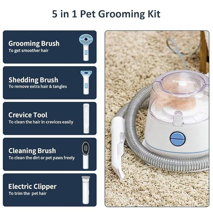 - 5-IN-1 TOOLS: Grooming brush, care for pet's skin and hair. Shedding brush-thinning, hair removal, cooling and refreshing. Crevice tool, you can use it to clean pet hair on the sofa and bed. Cleaning Brush, easily remove dust and dirt from pet's feet. Washable filter components, filter components can be washed, no consumables.