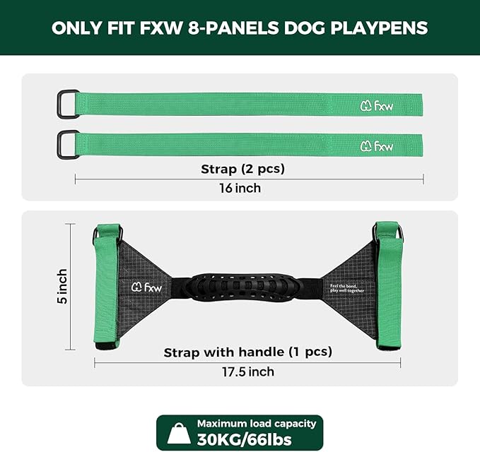 FXW Easy-Carry Straps, Fit 8-Panel of All Heights Dog Playpen, Designed for RV Trips, Green│Patent Pending