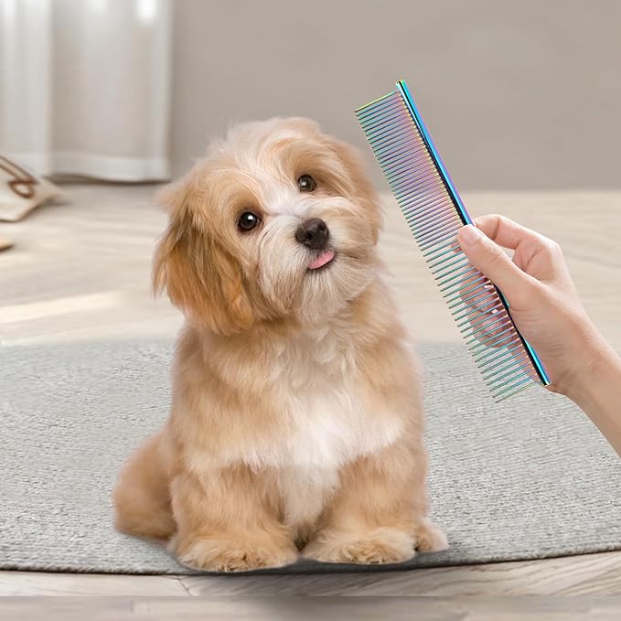 - VERSATILE: This dog combs for grooming matting is perfect for grooming small, medium and large dogs and cats, especially those with long or tangled hair. It gently removes mats and smooths the coat, leaving your pet's coat shiny and healthy. Ideal for regular grooming and total pet care