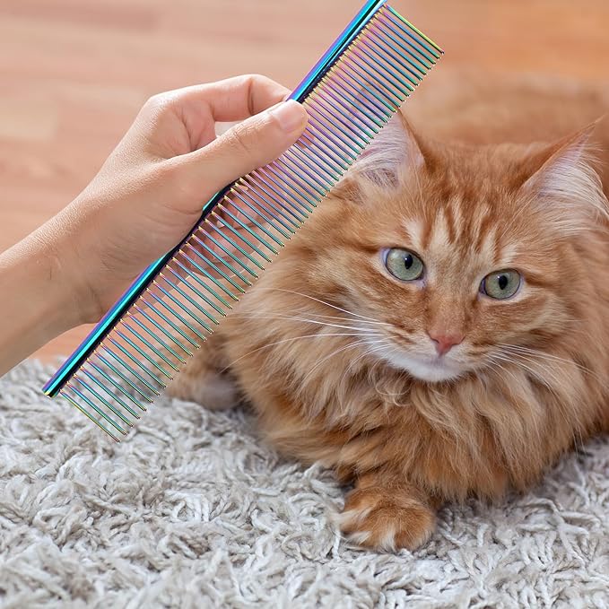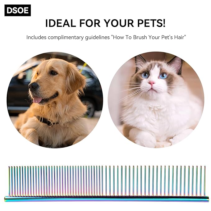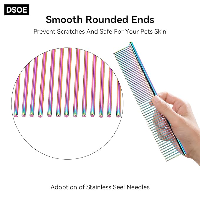 - HIGH QUALITY MATERIAL: Metal dog comb is made of high quality stainless steel, well polished, corrosion resistant and durable. With advanced coating process to ensure that the color will not fade and can effectively prevent static electricity, it is a reliable grooming tool worthy of long-term use