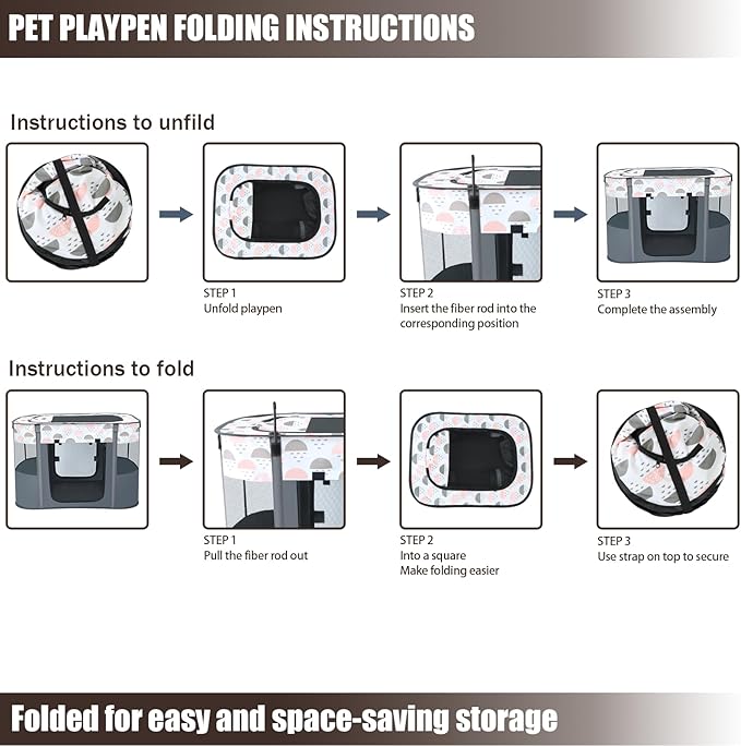 - 🐶QUALITY SERVICE:We attach great importance to customer experience,if you find any problem with the portable pet playpen,please contact us in time,I will reply you as soon as possible,and provide you with instructions and free return service.Your satisfaction makes us purpose.
