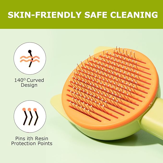 - 【One Touch Cleaning Pet Brush】 After brushing your pet, simply click the button to separate the brushed hair from the metal pins and wipe away the hair. The easy one-touch cleaning button saves time and makes cleaning the brush more convenient.