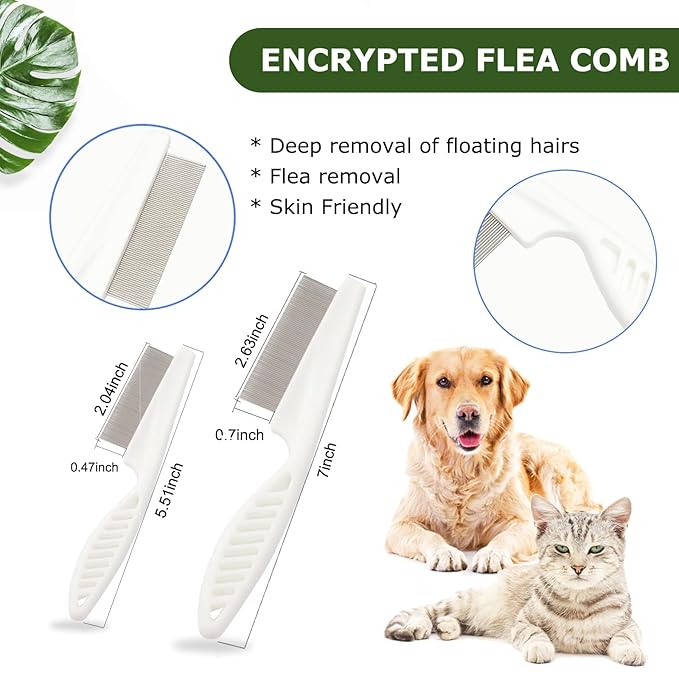- 【Effective Grooming for Dogs and Cats】 The 140°angled pins of the cute brush penetrate deep into the bottom of the hair and effectively remove up to 95% of the hair. The 2 Flea Combs grooming kit can be used on Small, Medium and Large short/ long-haired animals. Gently brush your pet's hair, to make your pet's grooming experience fun and enjoyable.