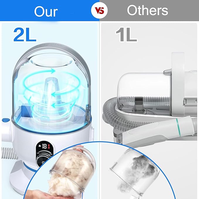 - LARGE CAPACITY TRASH CAN AND EASY TO CLEAN: Not easily entwined hair design and one-click cleaning, with removable 2L trash can, can reduce the number of dust cup cleaning, while more suitable for large pets or multiple pets, with three layers of filter to protect the host, extend the service life of the product, the functioning process is easier and easier, saving your time.