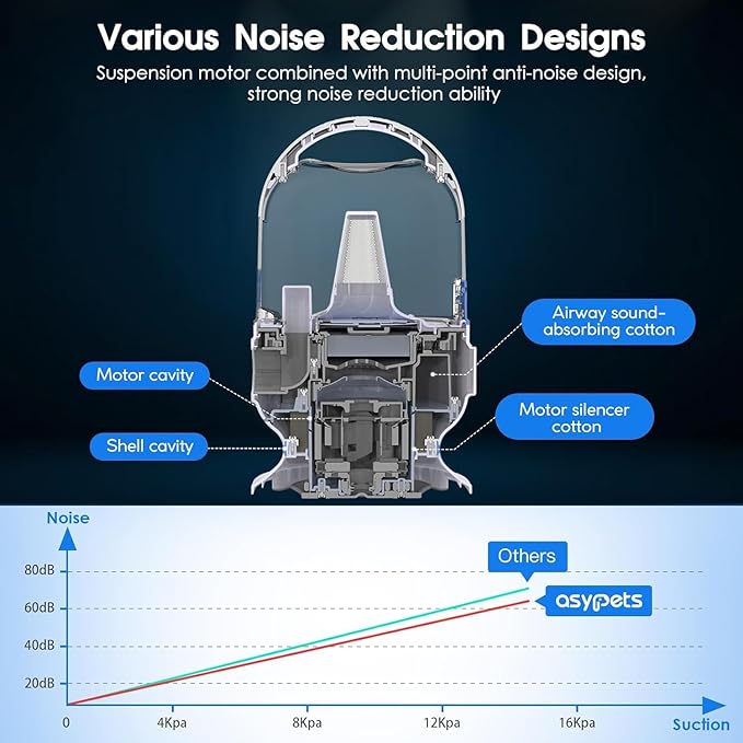 - ULTRA-LOW NOISE: The suspension motor combines multi-point anti-noise design, the inner cavity and knocked out cavity shell of the motor are double cavities to block noise, and the dual effect of air duct and motor sound-absorbing cotton can minimize noise in all appearance , reduce the psychology of pet fear, and make your pet grooming process more relaxed and pleasant.