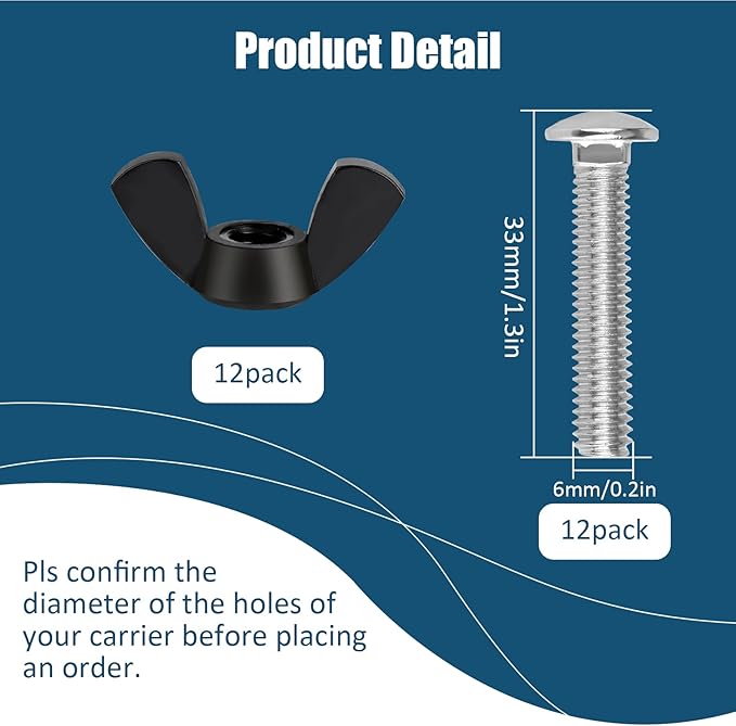 - Quick to Use: No tool required. Just take off the old carrier bolts and bolt nuts. Then replace them with our M6 carrier fasteners and fasten with butterfly nuts. Very easy to operate by yourself alone and save your time.