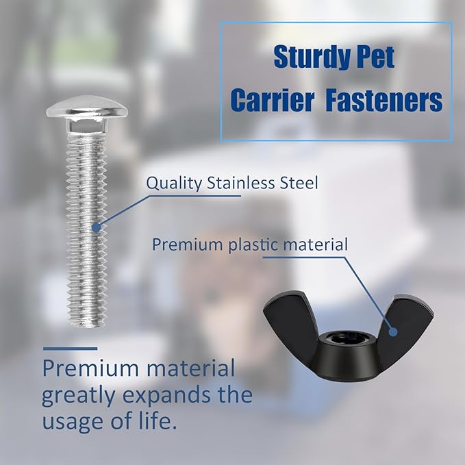 - Sturdy Dog Kennel & Hard Cat Carrier Fasteners: The M6 bolts are made of high quality solid stainless steel and the butterfly nuts premium plastic material, not easy to get rusty or broken, greatly extend the usage of life.
