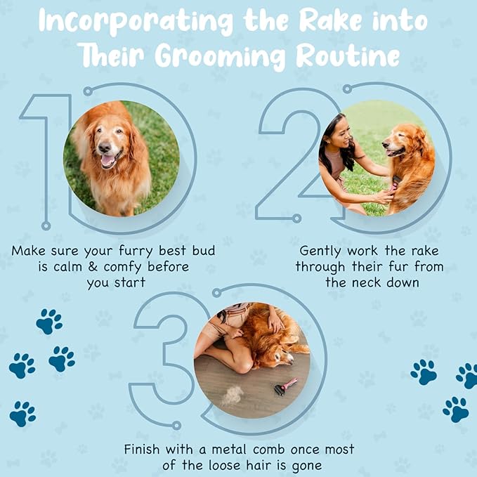 - ✅DEMATTING AND DESHEDDING TOOL: Our grooming brush is perfect for dematting and deshedding your pet’s coat. The deshedding tool is especially designed to tackle undercoat shedding in both cats and dogs. Crafted by pet grooming experts, the deshedding dog brush ensures a tidy and healthy coat for your furry companion.