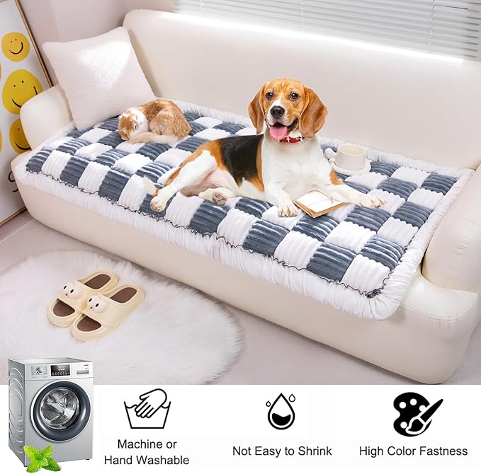 - Luxurious Comfort: Handcrafted from dense flannel fabric, our couch cover blanket ensures thickness, skin-friendliness, and durability without any hair loss or color fading. Filled with high-resilience PP cotton, these covers stay fluffy and soft even after prolonged use. The large plaid square design of these sofa cover for dogs releases your fatigue, providing a cozy spot for your furry friends to relax