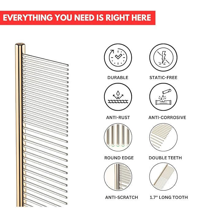 - ✅ RISK-FREE LIFETIME GUARANTEE: Our pet hair removal tool is made from sturdy and premium comb material.We firmly stand by the lasting quality of our pet grooming tool. If for any reason you're not 100% happy with it, reach out to us to receive a refund or replacement.This dematting comb for cats and dogs is made with high carbon stainless steel. Our Dog comb is static free , rust proof and anti scratch. This cat comb from cat grooming supplies gives a lifetime and premium grooming metal dog comb for long haired and short hair dogs, cats and pets.