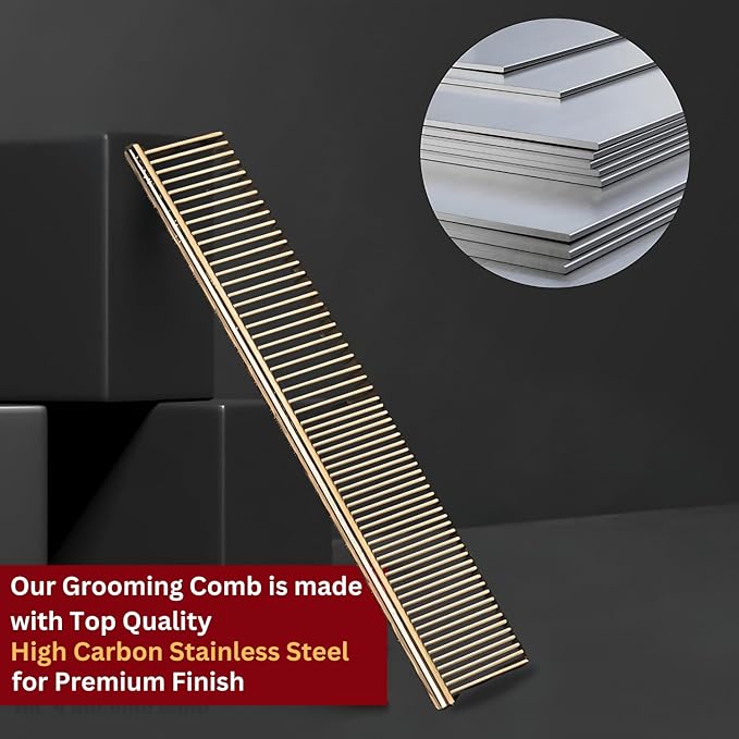 - ✨STAINLESS STEEL COMB: Our pet hair removal tool Unlike other pet grooming combs, this dog comb metal will never wear out and remove over 90% of shedding fur from your dog or cat.Designed to endure numerous grooming sessions. 🐾This dog grooming metal comb makes your dog, cats, rabbits and pets well groomed. With this wide tooth comb you can comb your dogs and cats comfortably.