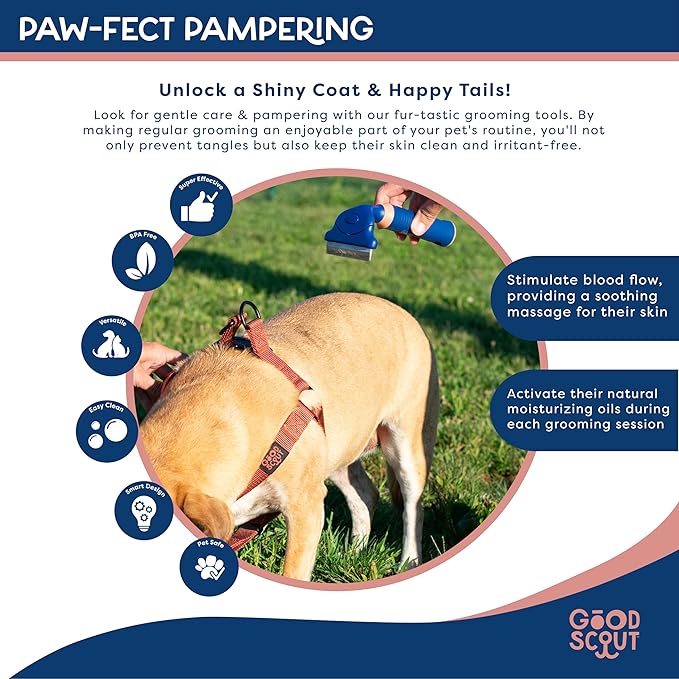 The pet grooming brush works wonders on my golden retriever’s thick coat. It removes loose fur effortlessly and my dog actually enjoys being brushed now.